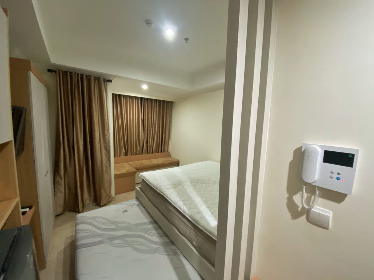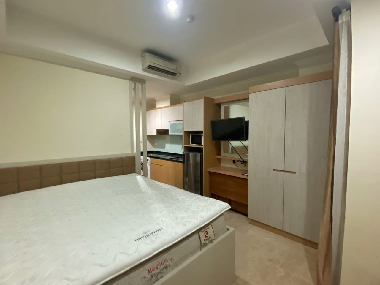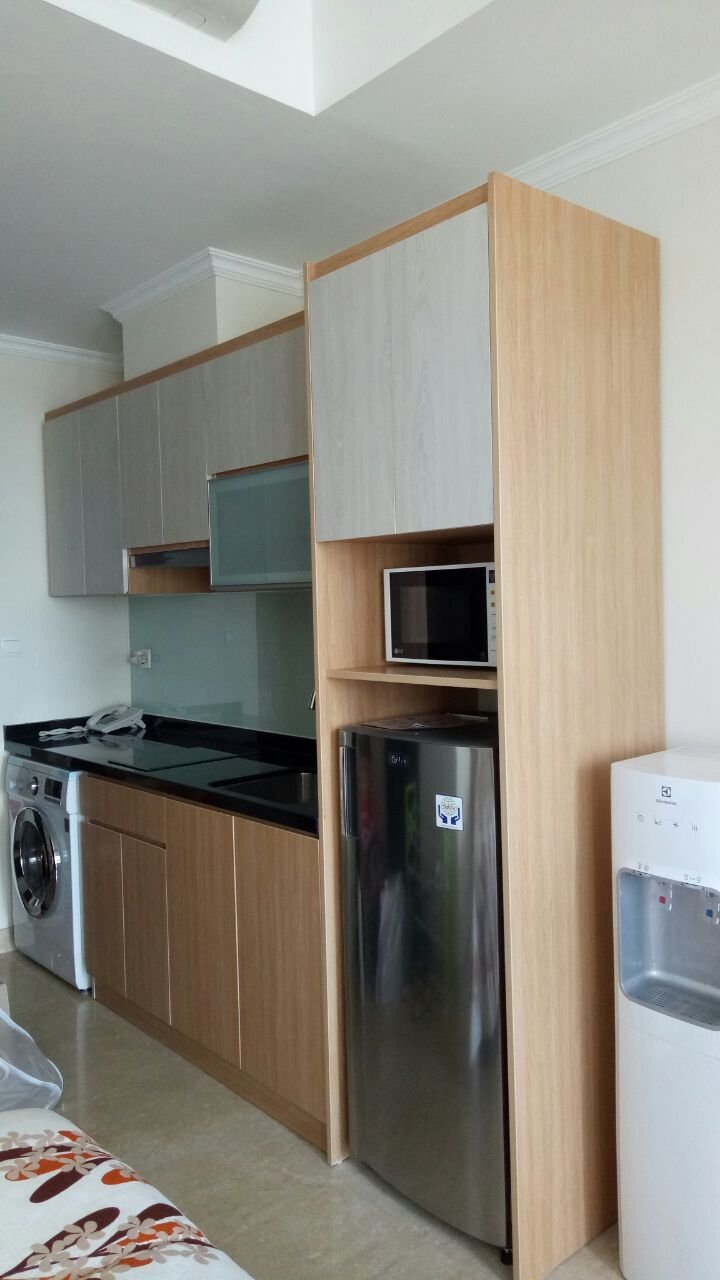 Type Studio, Tower Diamond lantai 12. Ukuran 28 m2. Full furnished (microwave, kulkas, mesin cuci, air hangar, AC, TV, tempat tidur, meja makan, meja rias dan kitchen set).